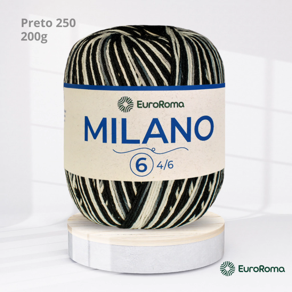 O Barbante EuroRoma Milano possui 6 fios e é um barbante mesclado ideal para diversos segmentos da decoração. Desde tapeçaria de cozinha e banheiro até a confecção de flores para aplicação em diversos trabalhos (tapetes, mantas, almofadas...).